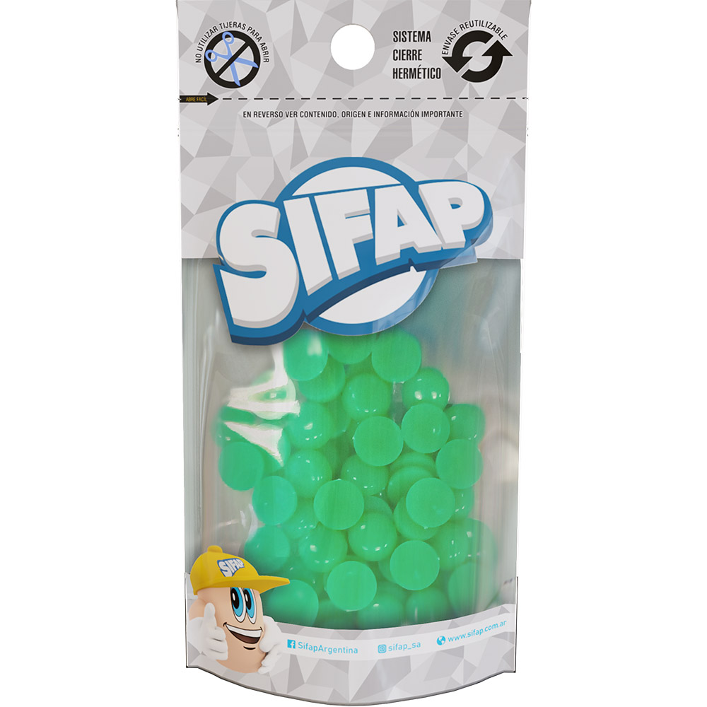 Nueva linea de Bijouterie - MEDIAS PERLAS COLOR: VERDE Envasada en DoyPack Sifap Peso Neto: 20 gramos Unidades por bulto: 30 Doy Pack